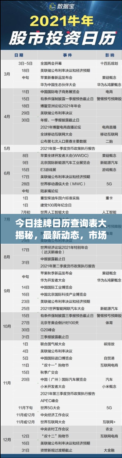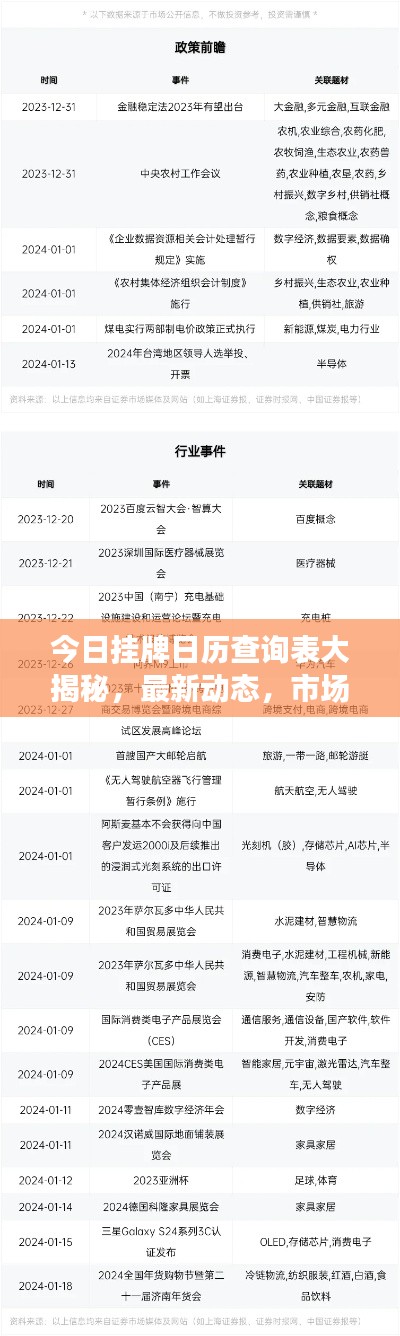 随着科技的快速发展,信息的获取变得日益便捷,在众多信息中,挂牌日历查询表对于关注市场动态、把握商机的人来说尤为重要,本文将为您带来最新的挂牌日历查询表,助您洞悉市场脉搏,掌握最新动态。