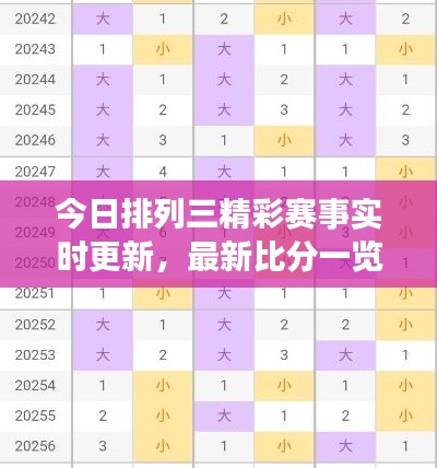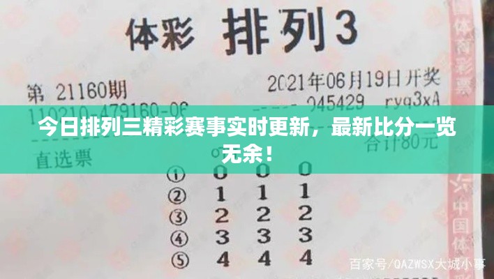 近年来,体育彩票市场日益繁荣,各种彩票游戏吸引了众多彩民的关注,排列三作为一种受欢迎的彩票游戏,其比赛结果和最新比分更是备受关注,本文将围绕“今日排列三最新比分”这一主题展开,介绍排列三的背景、玩法特点以及最新比分的获取方式,同时分享彩民们的反应和看法。