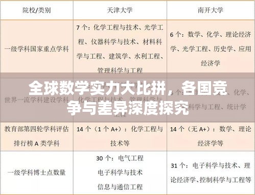 随着全球化的不断发展,数学作为世界语言的重要性日益凸显,数学在各个领域的应用越来越广泛,其发展水平已经成为衡量一个国家科技实力和教育水平的重要指标之一,全球各国在数学领域的竞争也日益激烈,本文将根据数学全球排名,探讨各国数学实力的竞争与差异。