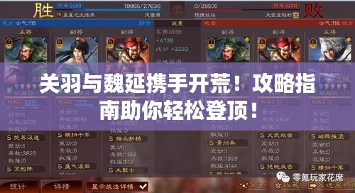 3、团队协作:在游戏中,与其他玩家组队协作,共同征战沙场,通过团队合作,更好地发挥关羽和魏延的优势,提高胜率。