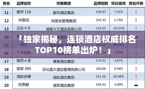 随着旅游业的蓬勃发展,酒店业也迎来了前所未有的繁荣,连锁酒店因其优质的服务、良好的口碑和完善的设施而受到广大消费者的青睐,本文将为您介绍连锁酒店最新排名前十名,让您在选择酒店时更加得心应手。