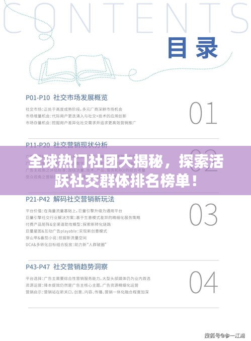 随着全球化的推进,世界各地的人们通过各种方式相互联系,共同构建了一个多元化的社交网络,社团作为社交的一种重要形式,已经成为人们交流思想、分享知识、建立联系的重要平台,本文将探讨全球范围内活跃社团的排名,揭示哪些社团在全球范围内拥有广泛的影响力。
