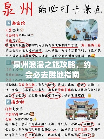 泉州是一座充满魅力的城市,拥有丰富的旅游资源,对于情侣们来说,这里是一个约会的绝佳选择,希望这份攻略能帮助你度过一个难忘的泉州之旅,你们可以一起感受历史与自然的交融,共同度过美好时光。