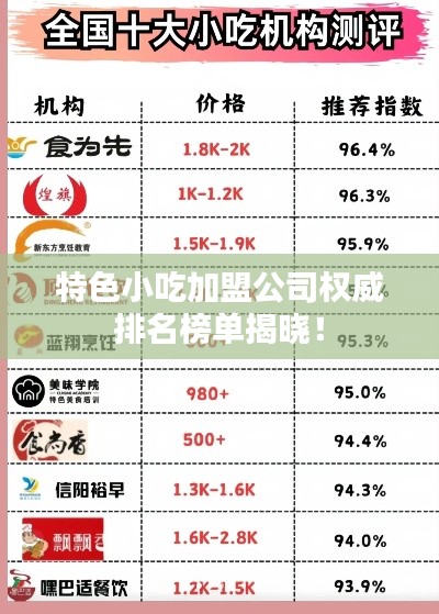 随着经济的发展和人们对美食的不断追求,小吃市场逐渐繁荣,特色小吃加盟公司也应运而生,本文将介绍一些在行业内颇具影响力的特色小吃加盟公司排名。