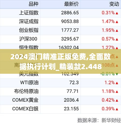 “澳门精准正版免费,全面数据执行计划_精装款2.448”是一个集数据采集、分析、应用于一体的综合性政策执行方案。通过该计划,我们旨在实现政策执行过程的全面透明化和数据化,提高政策执行的精准性和有效性。
