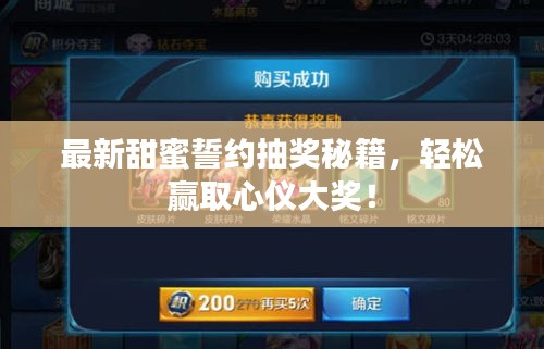甜蜜誓约活动以其独特的浪漫氛围和丰富的奖品吸引了众多参与者,为了让大家更好地了解如何赢取心仪奖品,本文为大家带来最新甜蜜誓约抽奖攻略,请遵循以下建议,助您轻松成为幸运儿。