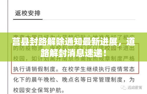 莒县封路解除通知书的发布为当地疫情防控工作带来了新的希望,让我们共同努力,克服疫情影响,迎接更加美好的明天。