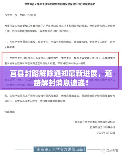 随着疫情防控形势的持续好转,莒县封路解除通知书最新消息引起了广泛关注,本文将为大家介绍相关情况,以便大家及时了解最新动态。