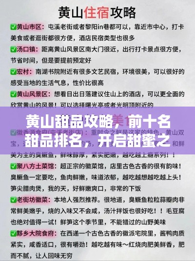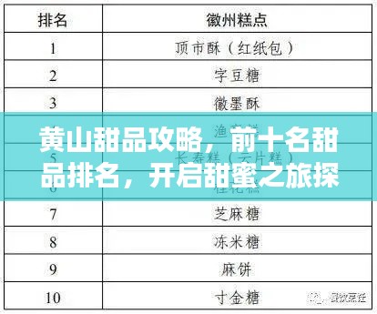 黄山,这座历史悠久的自然风景区,以其雄伟的山景、古老的村落和丰富的文化吸引了无数游客,在享受黄山美景的同时,不妨尝试一下当地的甜品,感受那份独特的甜蜜,本文为您带来黄山甜品前十名排名,让您在品味甜蜜的同时,了解当地的文化风情。