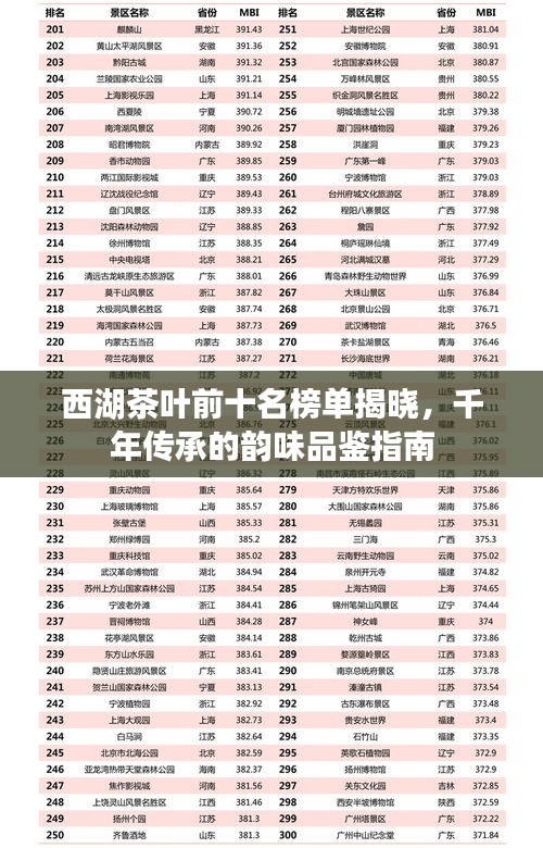 在中国茶文化的博大精深中,西湖龙井茶无疑是其中的佼佼者,而关于西湖茶叶的排名,一直备受关注,本文将为您揭晓西湖茶叶前十名排名,带您领略千年传承的韵味。