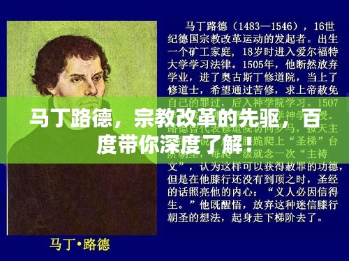 马丁路德,这个名字如同一个震撼世界的音符,在历史的长河中回荡,久久不息,当我们百度一下马丁路德,会发现他是一位重要的宗教改革家,也是新教路德宗的代表人物,让我们一起走进马丁路德的世界,探寻他的生平、思想及影响。