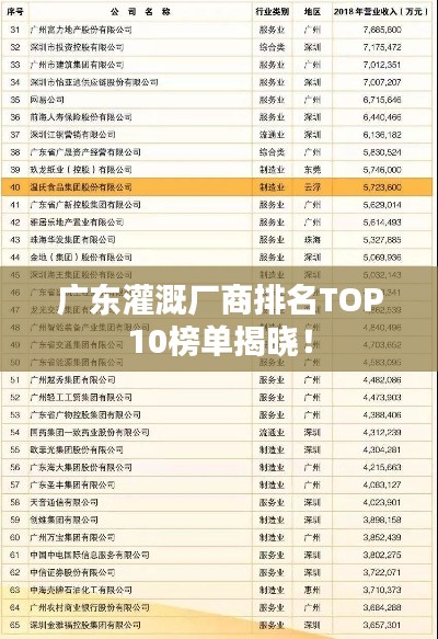 广东作为中国南方的重要农业产区,灌溉技术的先进与否直接关系到农业生产的效率和品质,本文将介绍广东地区灌溉厂商排名前十名,这些企业在灌溉设备的研发、生产、销售等方面均表现出色。