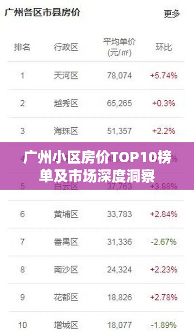 随着城市化进程的加速,广州的房地产市场日益繁荣,小区房价的波动也备受关注,本文将为您揭晓广州小区房价前十名的排名,同时分析背后的市场趋势和因素。