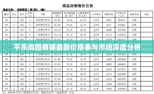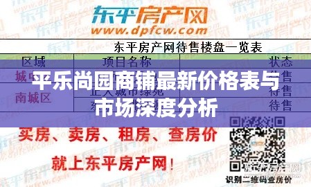 平乐尚园作为本地区的商业综合体,其商铺价格及市场状况备受关注,本文提供的最新价格表及市场分析,旨在帮助投资者更好地了解当前市场状况,做出明智的投资决策,在投资过程中,请务必关注市场动态、理性投资、谨慎决策,并考虑多元化投资以降低风险。