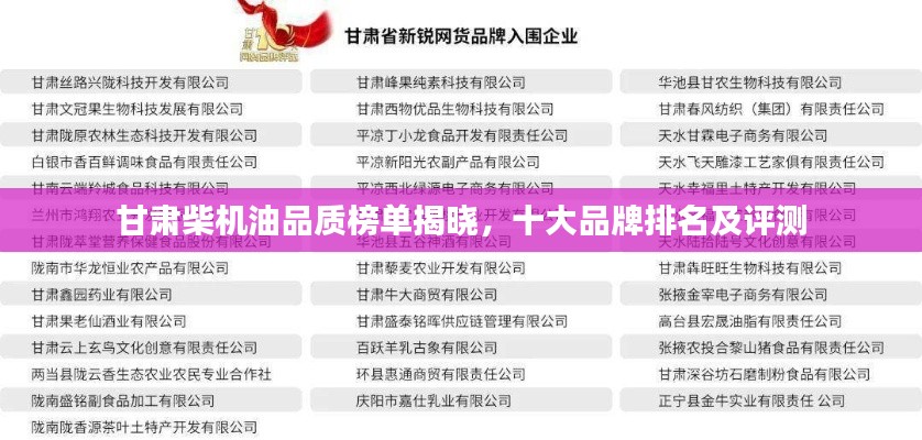 柴机油,即柴油机润滑油,在机械设备运行中起着至关重要的作用,甘肃地区,作为中国西部地区的重要省份,其柴机油市场同样竞争激烈,品质各异,本文将为您介绍甘肃地区柴机油排名前十名的产品,以便您更好地了解当地市场。