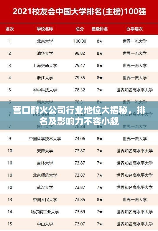营口耐火材料市场因其独特的市场地位和丰富的产品种类而备受关注,在众多营口耐火材料中,营口耐火公司的表现尤为突出,本文将深入探讨营口耐火公司的排名及其在行业中的地位。
