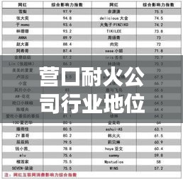 关于营口耐火公司的排名,因具体评价标准不同,可能会有所差异,营口耐火公司在业内享有较高的声誉和地位,以下是几个关键方面的排名情况: