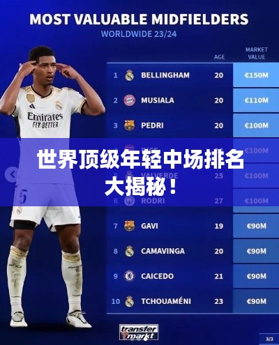 世界足坛的舞台上,年轻的中场球员正崭露头角,成为球队的顶梁柱,他们凭借出色的技术、敏锐的洞察力和无限的潜力,为世界足坛注入了新的活力,本文揭示了世界顶级年轻中场的排名,带您领略了这些年轻才俊的风采,让我们共同期待他们在未来的比赛中创造更多的辉煌。