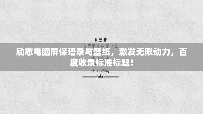在这个快节奏的时代,电脑已经成为我们生活中不可或缺的一部分,长时间面对电脑工作、学习,很容易让人感到疲惫,为了让我们的工作和学习更加充满动力,励志的电脑屏保语录与壁纸应运而生,它们不仅能帮助我们恢复精力,还能提醒我们坚持不懈,追求梦想。