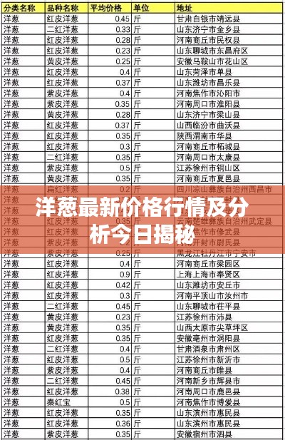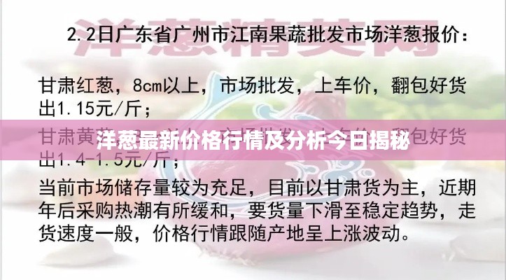 本文将对洋葱的最新价格进行介绍,并对当前价格趋势进行分析,随着季节的变化和市场需求的变化,洋葱的价格也会有所波动,以下是关于洋葱今日价格的详细信息。