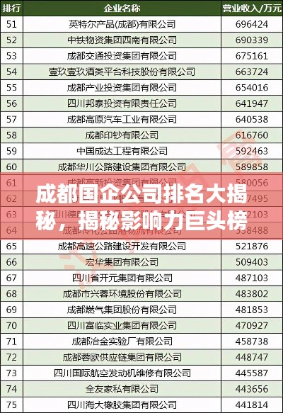 转载请注明来自江西北定建设工程服务体系,本文标题:《成都国企公司排名大揭秘,揭秘影响力巨头榜单》