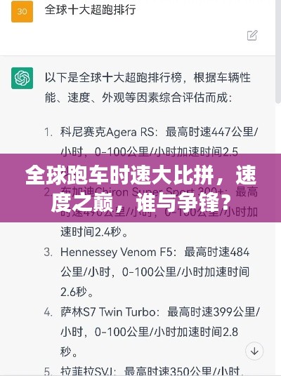 转载请注明来自江西北定建设工程服务体系,本文标题:《全球跑车时速大比拼,速度之巅,谁与争锋?》