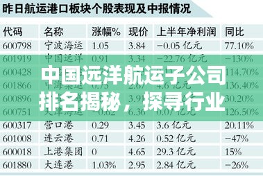 随着全球经济的不断发展和深化,航运业作为全球经济的重要支柱之一,始终扮演着至关重要的角色,中国远洋航运业在全球化的大背景下,更是取得了长足的发展,本文将探讨中国远洋航运子公司的排名,分析其在国内外市场的表现及未来发展趋势。