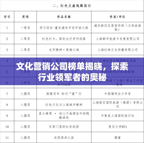 转载请注明来自江西北定建设工程服务体系,本文标题:《文化营销公司榜单揭晓,探索行业领军者的奥秘》