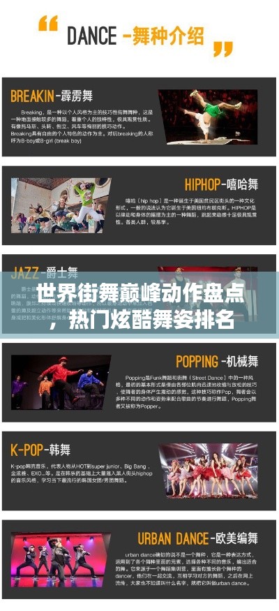 世界街舞顶级动作排名中的这些舞蹈形式各具特色,展现出街舞的多样性和魅力,每一种舞蹈形式都有其独特的韵律和风格,让人感受到生活的美好和活力。
