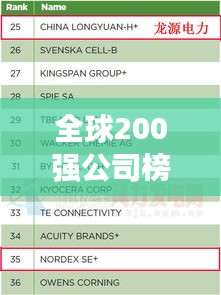 在全球200强公司中,一些制造业公司也表现出色,随着全球制造业的转型与升级,这些公司在智能制造、绿色制造等领域取得了显著进展,这些公司的成功,既源于其技术创新,也离不开其产业升级和结构调整。