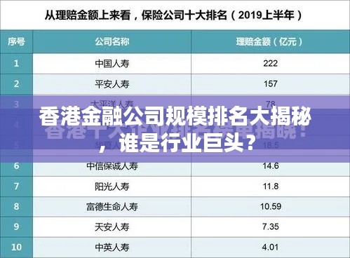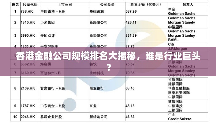 在香港金融界,一些规模庞大、业务全面的金融公司长期占据行业领先地位,这些公司通过提供多元化的金融服务,如银行、保险、资产管理等,逐渐发展成为行业的佼佼者,排名最前的金融巨头包括: