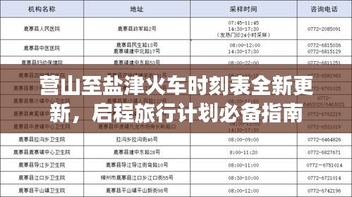 随着交通技术的不断进步,火车已成为人们出行的重要选择之一,对于计划从营山前往盐津的旅客来说,了解最新的火车时刻表是顺利出行的关键,本文将为您提供最新的营山到盐津火车时刻表,助您轻松规划旅程。