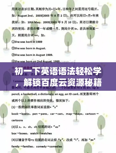 随着信息技术的快速发展,互联网已成为我们获取知识和学习的重要渠道,对于初一年级的学生来说,英语语法的学习是英语学习的重要部分,我们将聚焦于“初一下英语语法百度云”这一主题,探讨如何利用百度云资源有效学习初一下英语语法。