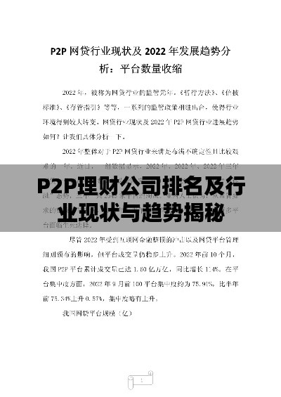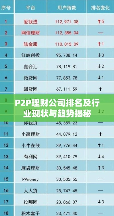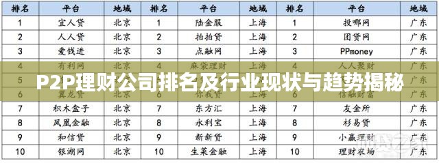 随着互联网金融的迅猛发展,P2P理财投资公司作为新兴金融业态,日益受到广大投资者的关注,本文将根据最新数据,对P2P理财投资公司进行排名,并深入分析行业现状及未来发展趋势。
