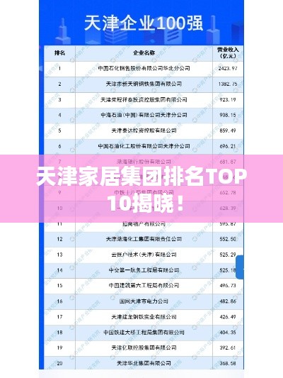 家居行业在近年来得到了飞速的发展,特别是在天津地区,众多家居企业如雨后春笋般崭露头角,本文将为您介绍天津地区家居集团排名前十名,这些企业在产品质量、服务、市场份额等方面均表现出色。