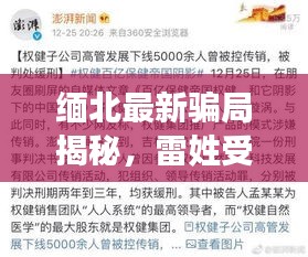 随着全球互联网的普及,网络诈骗事件屡见不鲜,缅北地区发生的诈骗事件引起了广泛关注,据最新消息透露,一名姓雷的受害者不幸落入骗子圈套,本文旨在揭示这一事件的来龙去脉,为广大公众敲响警钟,提高防范意识。