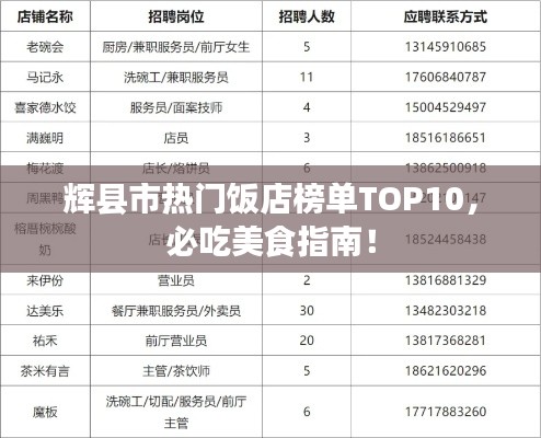 就是辉县饭店排名前十名的介绍,这些饭店以其独特的菜品和优质的服务吸引了众多食客前来品尝,如果您想品尝正宗的辉县美食,不妨到这些饭店一试。