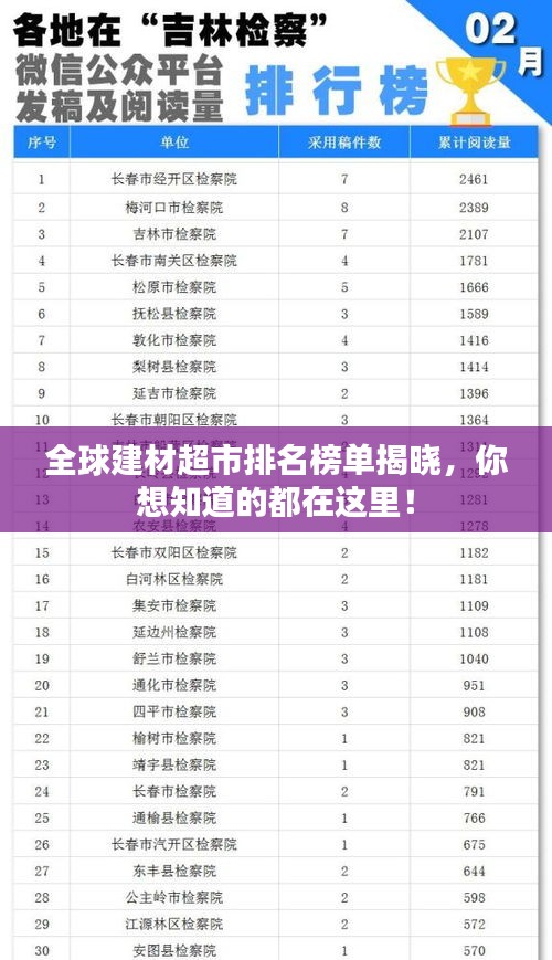建材行业一直是全球经济的重要组成部分,随着城市化进程的加速和基础设施建设的不断推进,全球建材市场呈现出蓬勃的发展态势,在这篇文章中,我们将探讨世界建材超市的排名及其背后的因素。