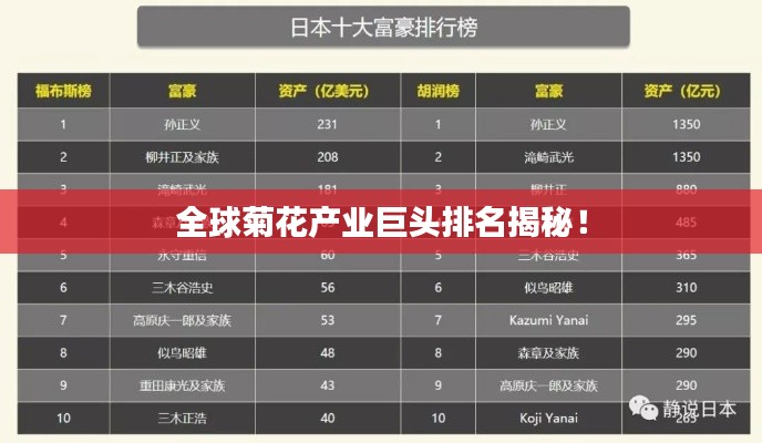 菊花,作为一种古老而美丽的花卉,深受世界各地人们的喜爱,随着人们对花卉需求的不断增长,菊花产业也在不断发展壮大,本文将介绍全球菊花厂的排名,带您了解这些生产优质菊花的领先企业。