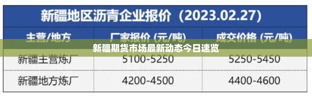 新疆地区的期货市场展现出其独特的活力,一系列最新的期货消息引起了广大投资者的关注,本文将对新疆期货市场的最新动态进行简要概述。
