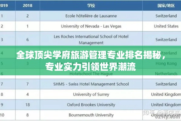 随着全球化的推进和旅游业的蓬勃发展,越来越多的人选择攻读旅游管理专业,世界各大高等学府在旅游管理领域的实力差异逐渐显现,本文将为您揭示全球旅游管理专业的排名情况,带您了解全球顶尖学府的旅游管理专业实力。