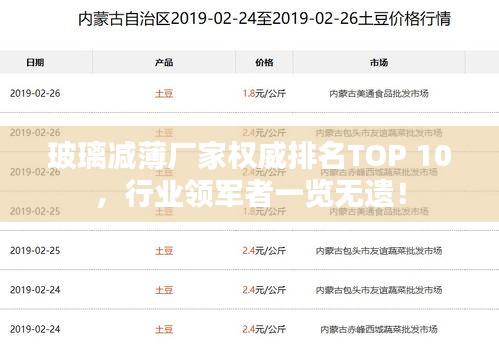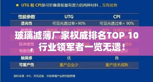 随着现代科技的飞速发展,玻璃减薄技术已成为行业内的热门话题,本文将介绍玻璃减薄厂家排名前十名,这些厂家在玻璃减薄领域具有较高的知名度和市场份额,为广大消费者提供优质的产品和服务。