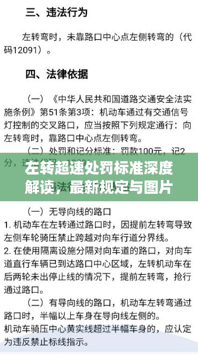 在现代道路交通管理中,超速行驶已成为一种严重的交通违法行为,特别是在左转过程中超速行驶,不仅危及自身安全,还可能对其他车辆和行人造成潜在威胁,为了加强交通安全管理,各地纷纷出台了针对超速行驶的处罚标准,本文将围绕“左转超速处罚标准最新图片”这一主题展开,为广大驾驶者提供最新的处罚标准解读及图片展示。