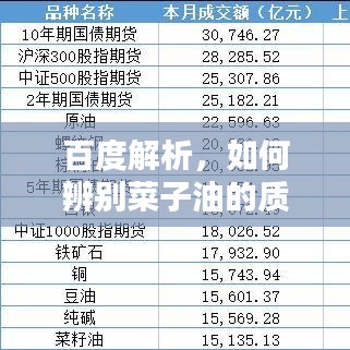 菜子油作为我们日常生活中常见的食用油之一,其质量与辨别方法备受关注,本文将通过百度经验为大家解析菜子油的分别方法,帮助大家了解如何选购优质菜子油,保障健康。