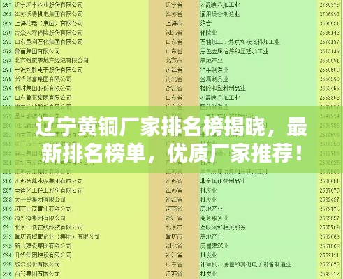 黄铜作为一种重要的金属材料,因其优良的导电性、延展性、耐腐蚀性等特性,广泛应用于建筑、电子、机械等领域,辽宁省作为我国重要的工业基地,拥有众多优秀的黄铜生产厂家,本文将介绍辽宁黄铜厂家排名榜最新的相关信息,以便消费者和业内人士了解。