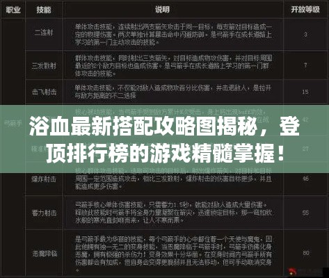 掌握浴血最新搭配攻略图,是取得游戏胜利的关键,通过了解游戏背景、角色设定以及最新搭配攻略图的实战应用,玩家可以轻松地提高战斗能力,轻松登顶排行榜,希望本文能为你带来帮助,祝你在浴血战场上取得更多的胜利!