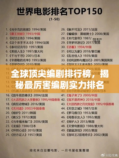 转载请注明来自江西北定建设工程服务体系,本文标题:《全球顶尖编剧排行榜,揭秘最厉害编剧实力排名!》