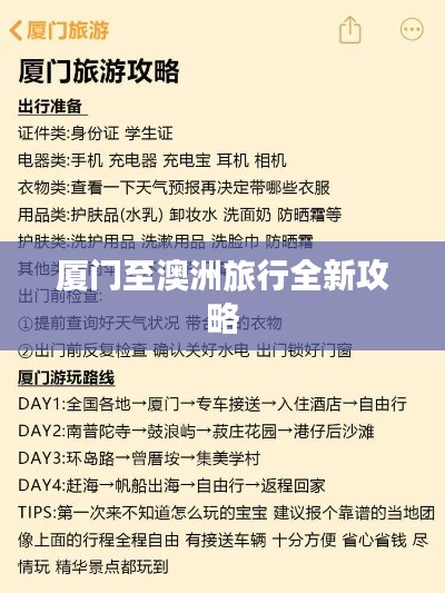 厦门作为中国的重要港口城市,与世界各地有着密切的往来,对于想要从厦门出发前往澳洲的旅客来说,了解最新的入境攻略至关重要,本文将为您提供详尽的厦门入境澳洲攻略,帮助您顺利完成旅行。