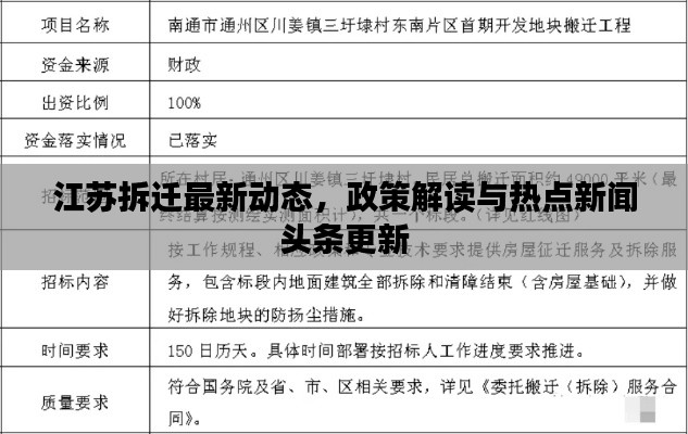 随着城市化进程的加速,江苏省各地的拆迁工作成为了公众关注的焦点,本文将围绕“江苏拆迁新闻头条”这一主题,梳理近期的相关新闻,解读政策背后的考量,同时探讨拆迁过程中的问题与挑战,以及展望未来的发展趋势。