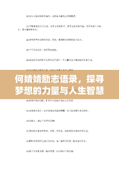何婧婧,一个充满活力和激情的名字,她在各个领域都展现出了卓越的才能和不懈的奋斗精神,她的励志语录,充满了人生的智慧和追梦的勇气,激励着一代又一代人为梦想而努力,本文将围绕何婧婧的励志语录,探讨追寻梦想的力量和人生智慧。